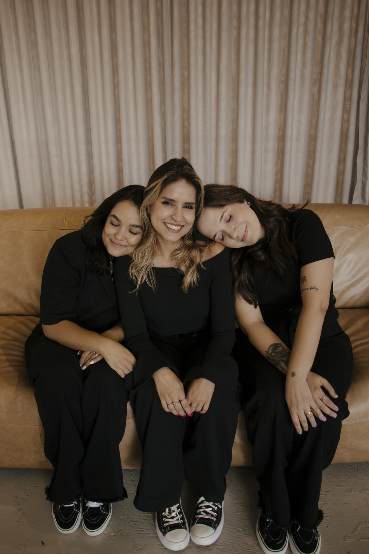 Essa sessão foi pensada com intenção de revelar a identidade de cada uma, sem perder a força do trio. Entre clicks e conversas, captamos o equilíbrio entre criatividade e estratégia, leveza e presença, individualidade e sinergia.