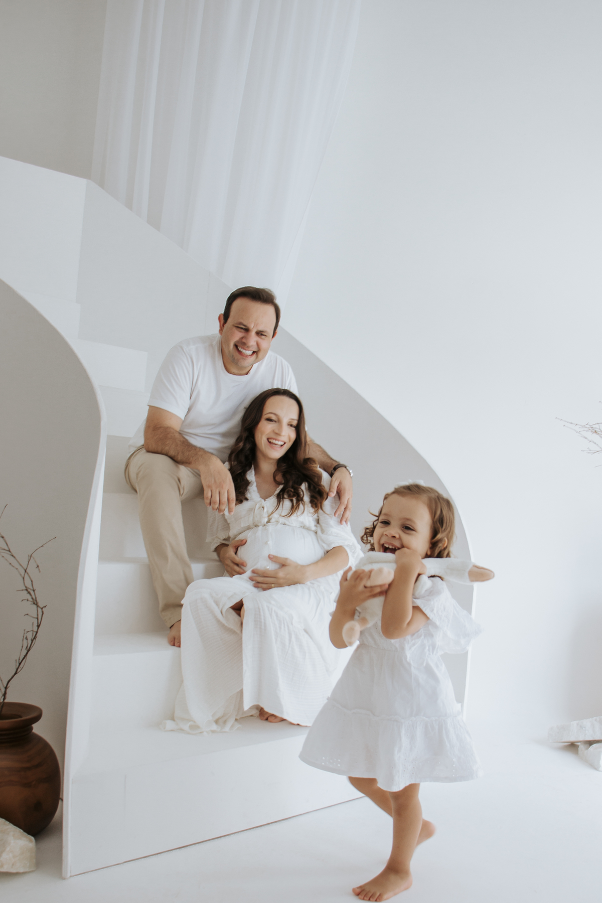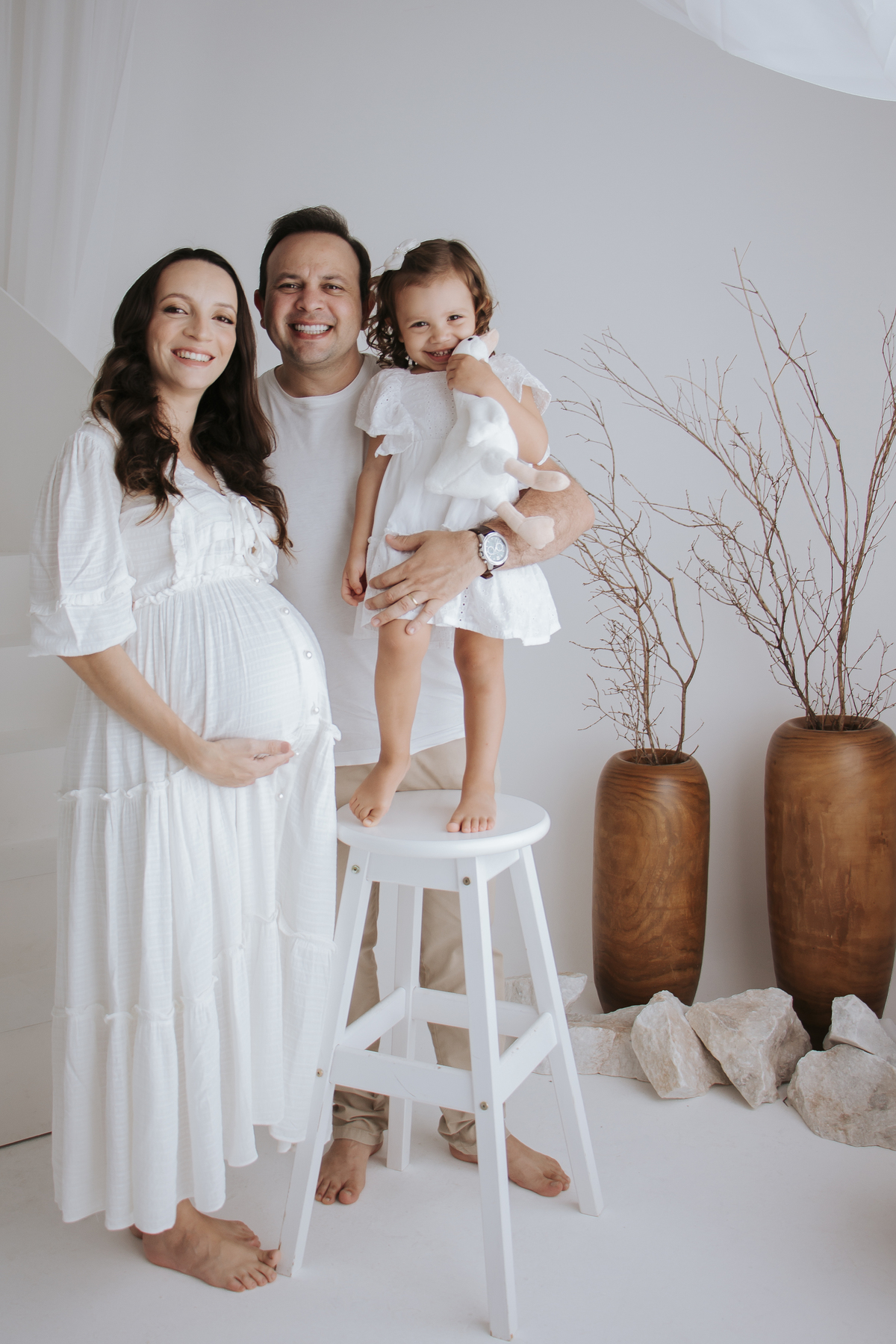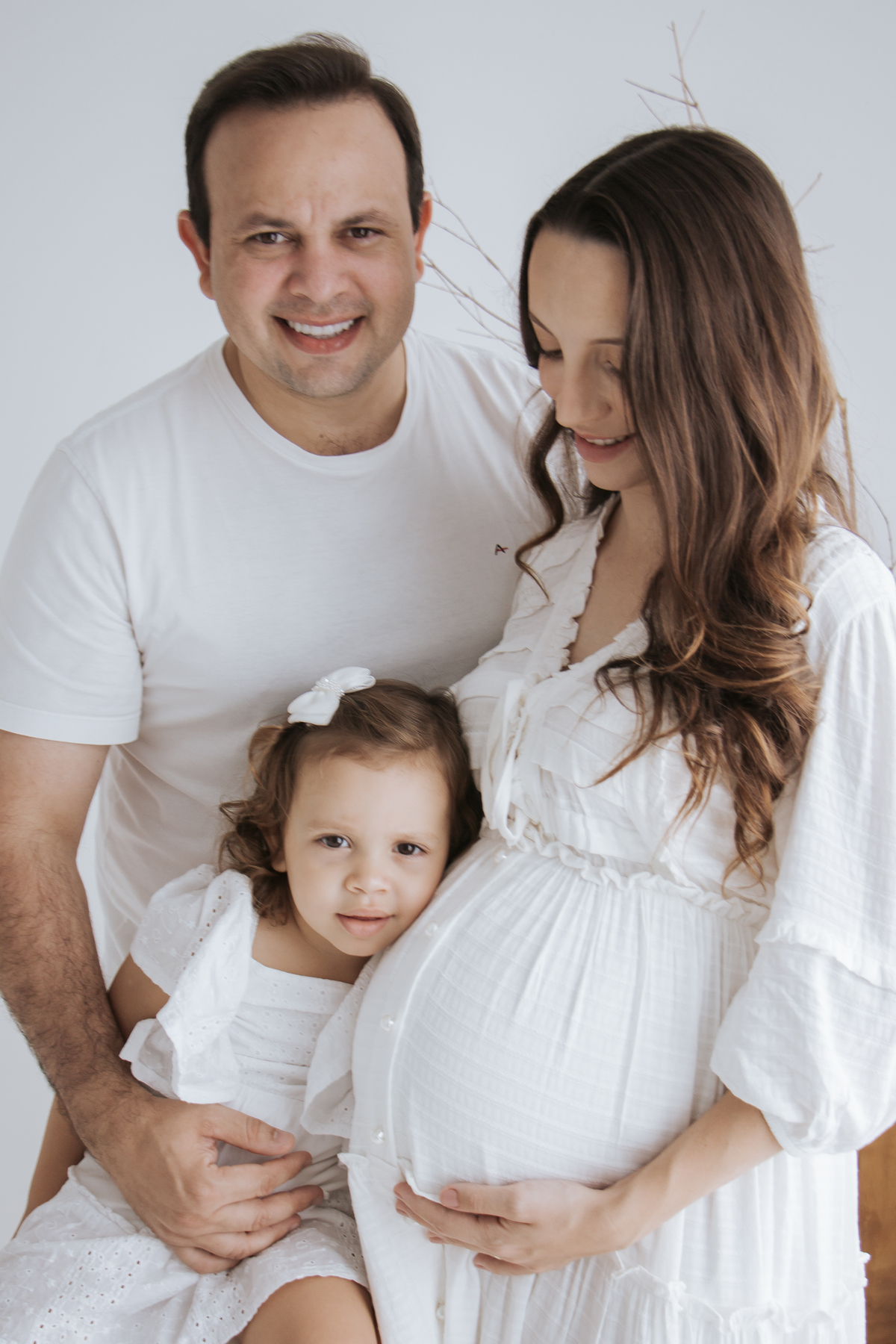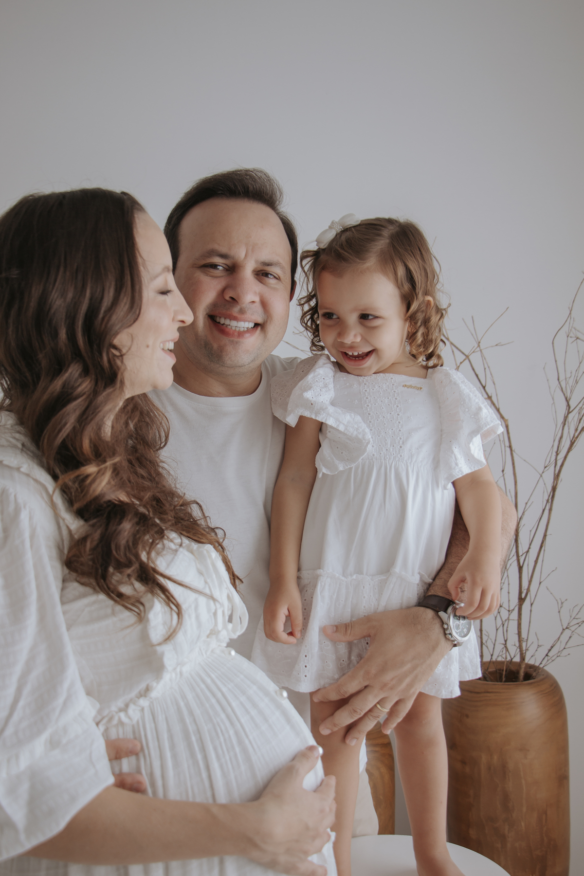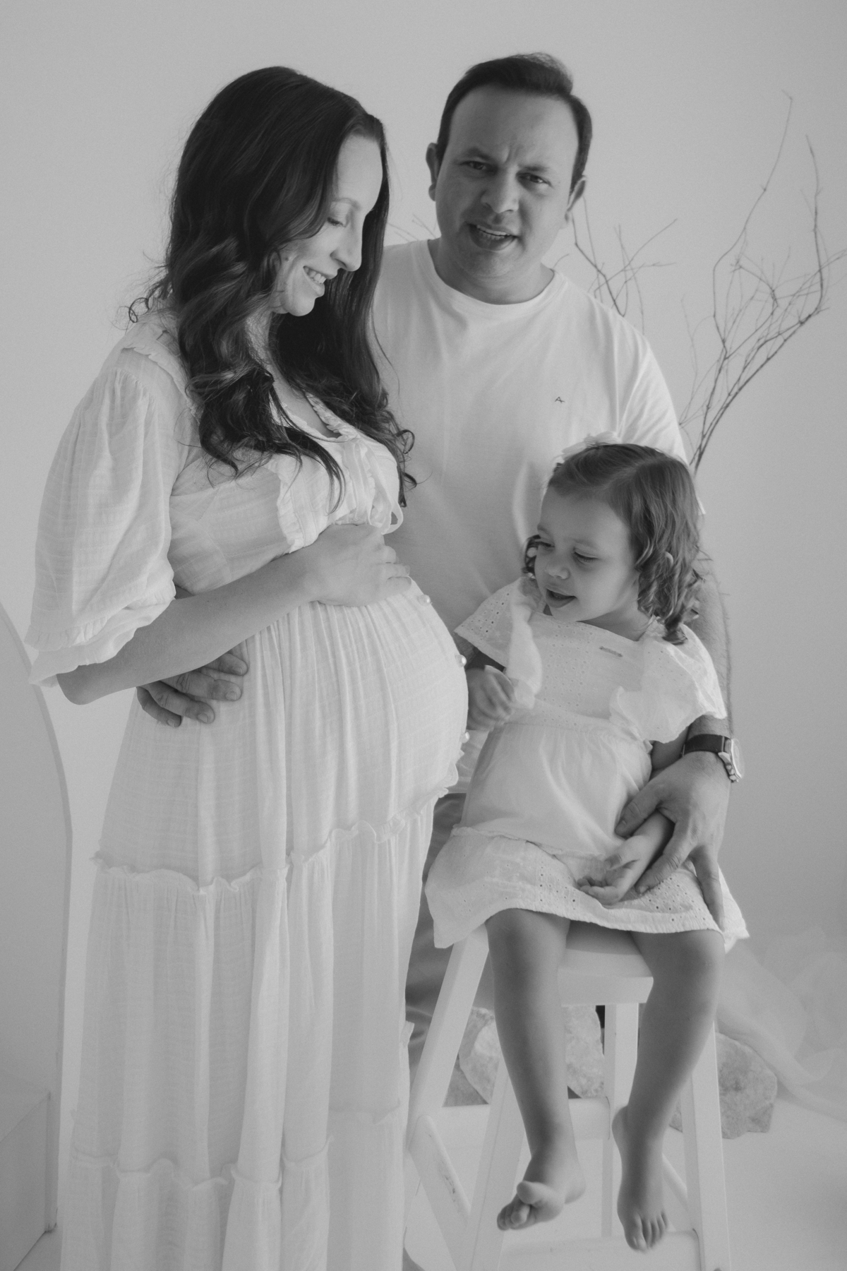 A Júlia, filha mais velha, já se preparava para seu novo papel de irmã. Durante a sessão ela contou segredos para o Isaias, fez cosquinha na barriga e disse que quando o irmão nascesse os dois iriam fazer muita bagunça por aqui.