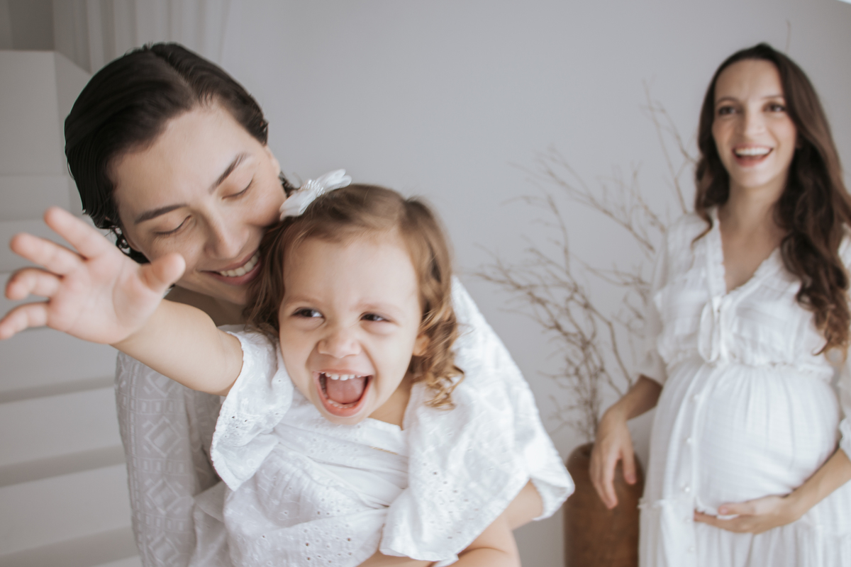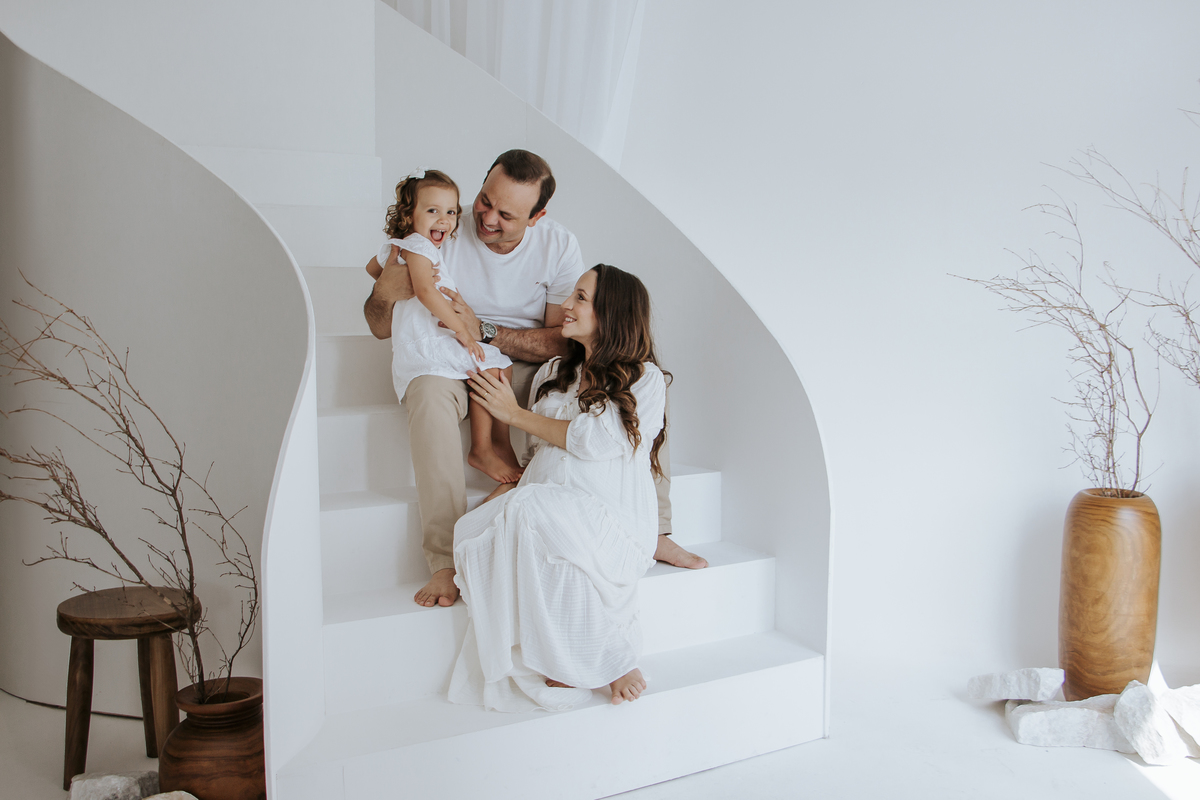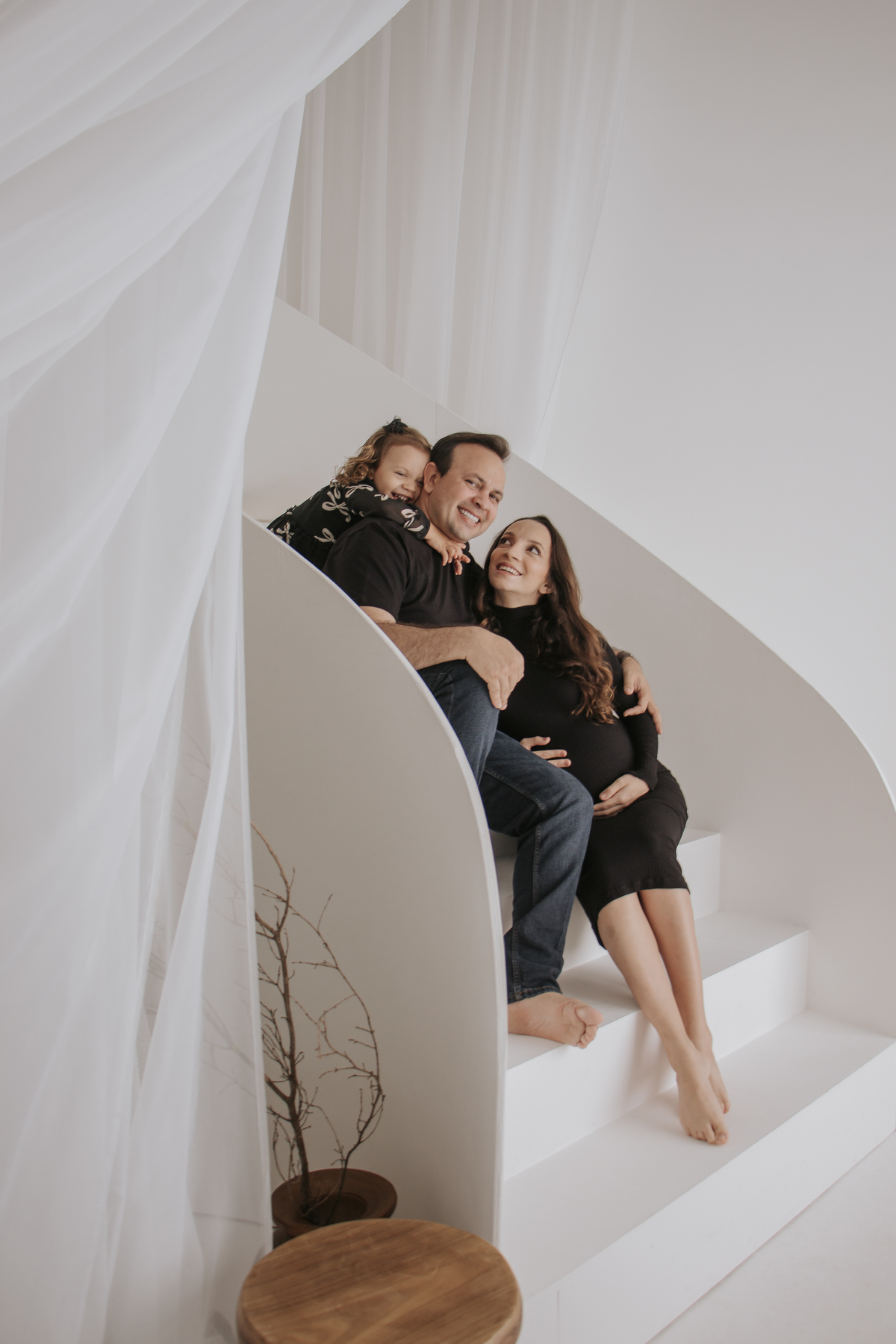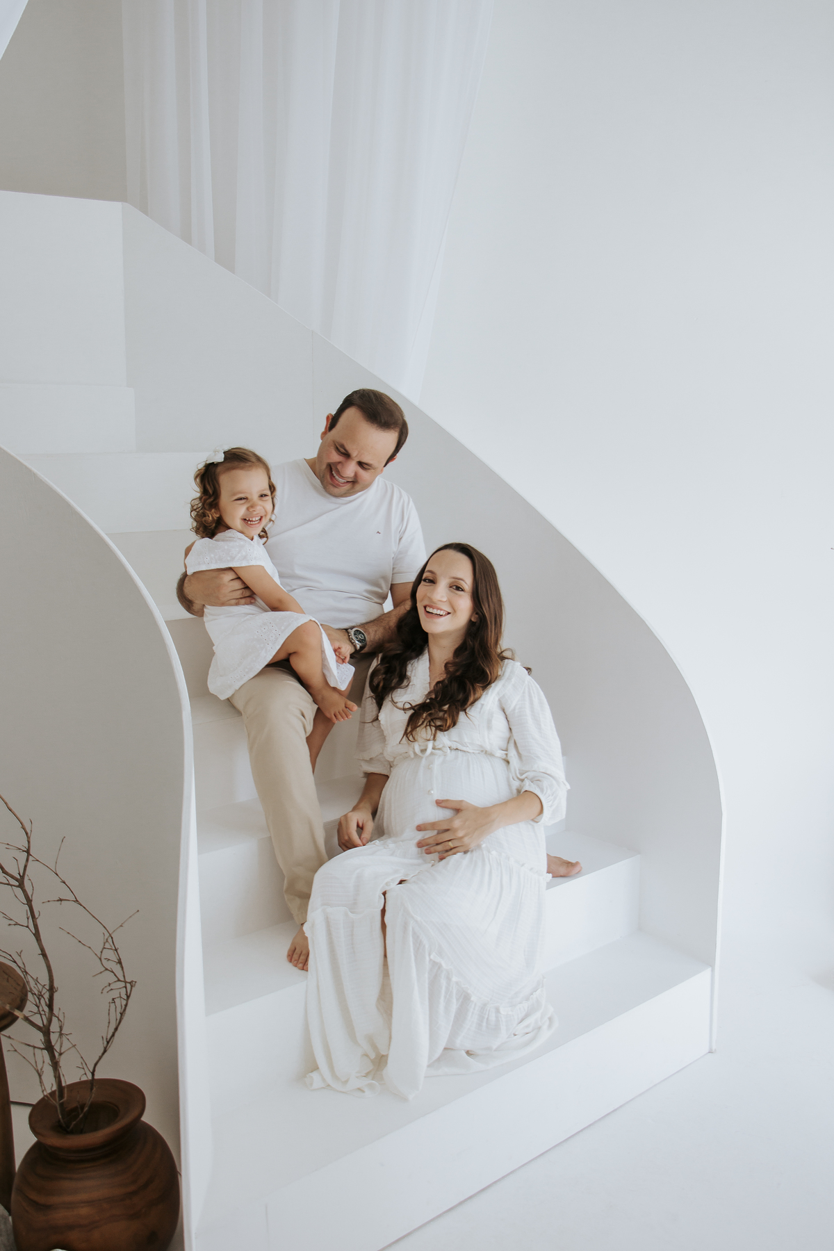 A Júlia, filha mais velha, já se preparava para seu novo papel de irmã. Durante a sessão ela contou segredos para o Isaias, fez cosquinha na barriga e disse que quando o irmão nascesse os dois iriam fazer muita bagunça por aqui.