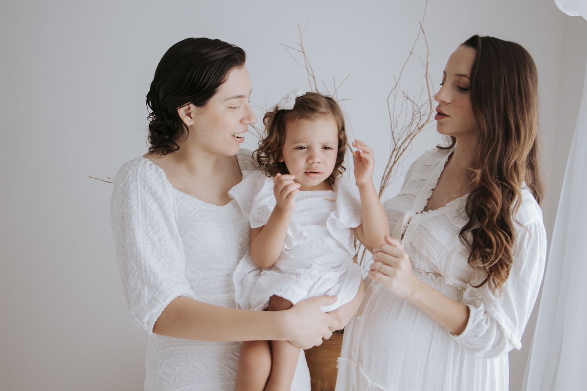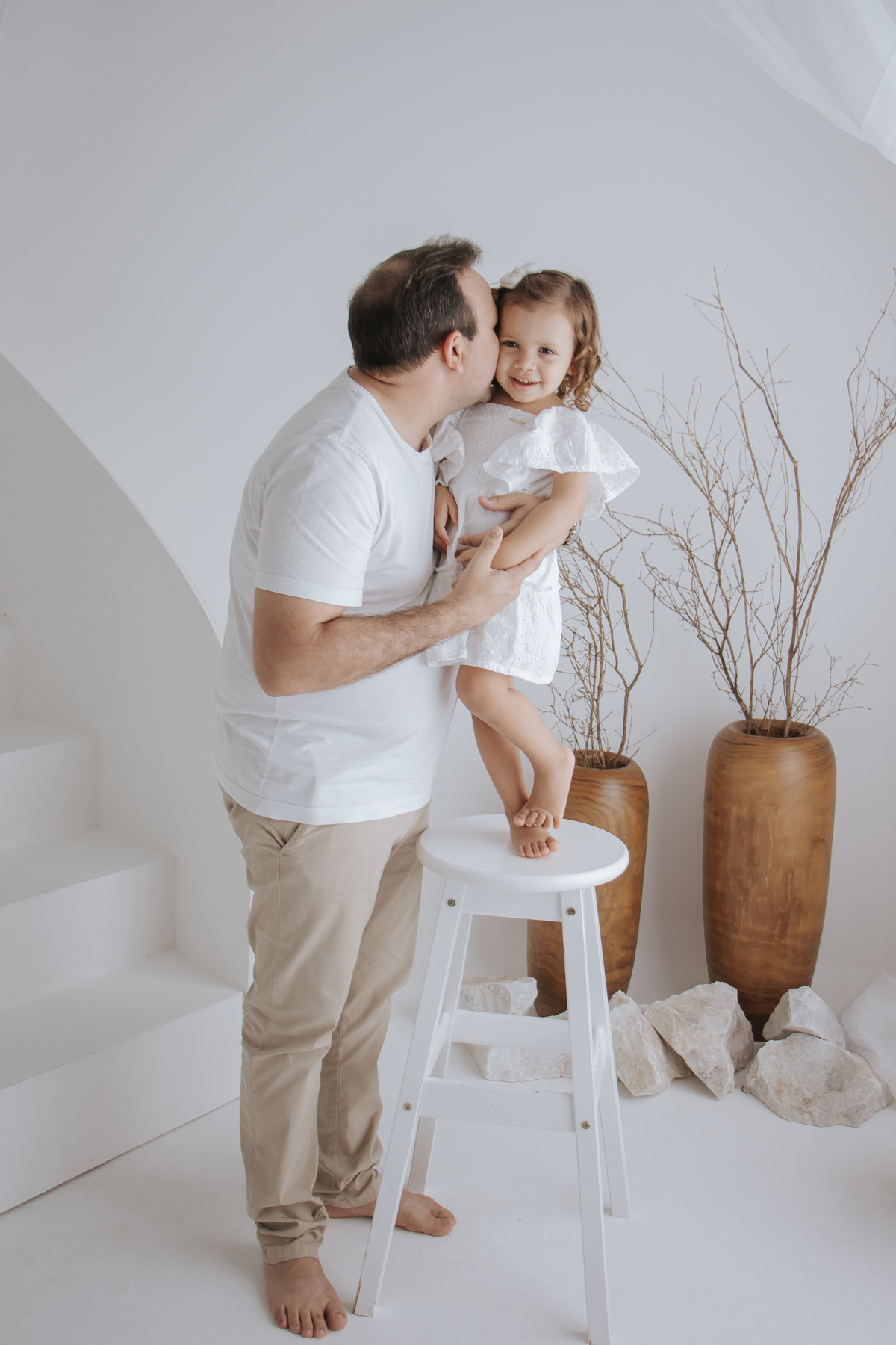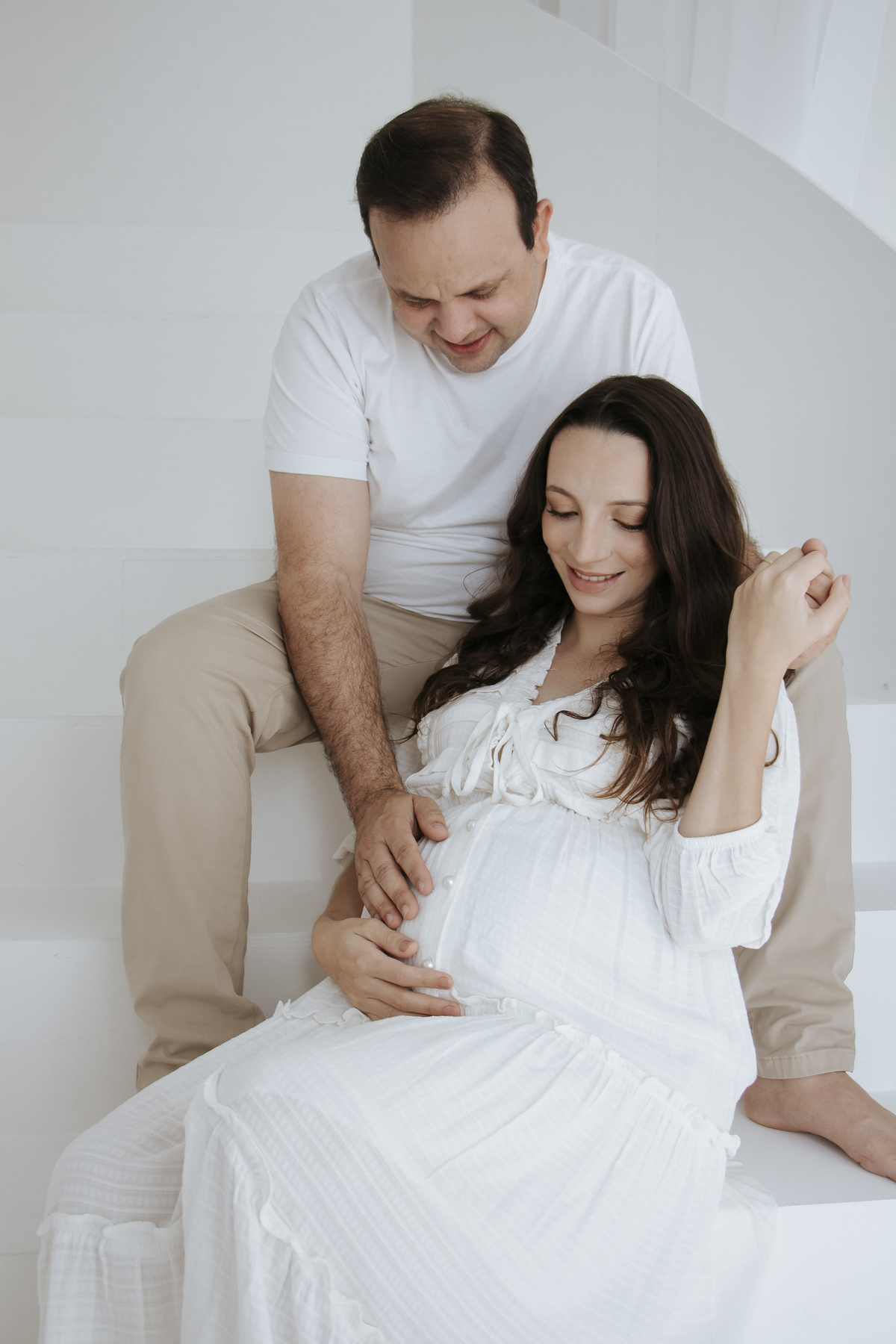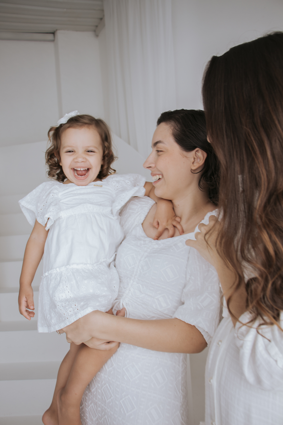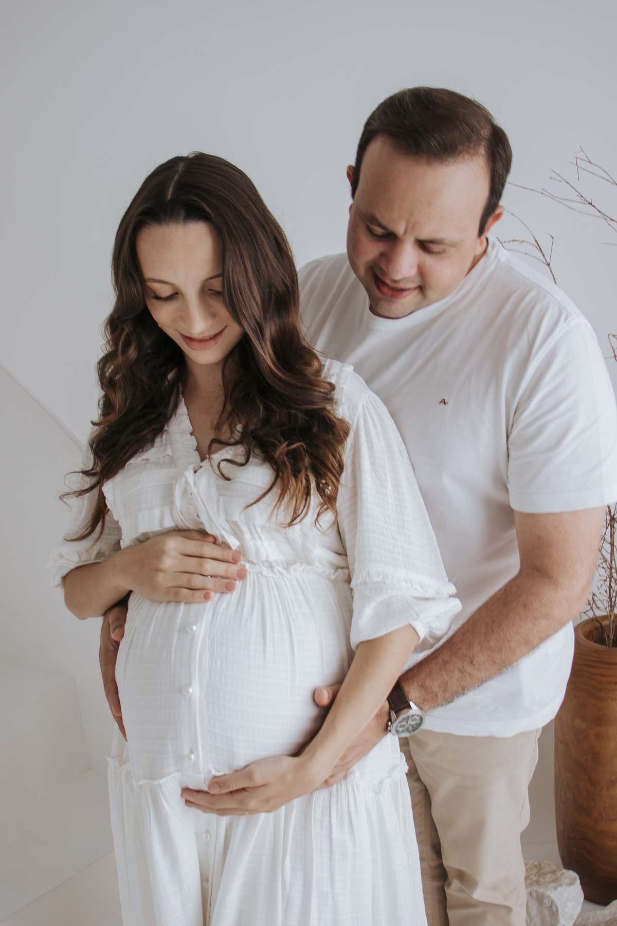 A Júlia, filha mais velha, já se preparava para seu novo papel de irmã. Durante a sessão ela contou segredos para o Isaias, fez cosquinha na barriga e disse que quando o irmão nascesse os dois iriam fazer muita bagunça por aqui.